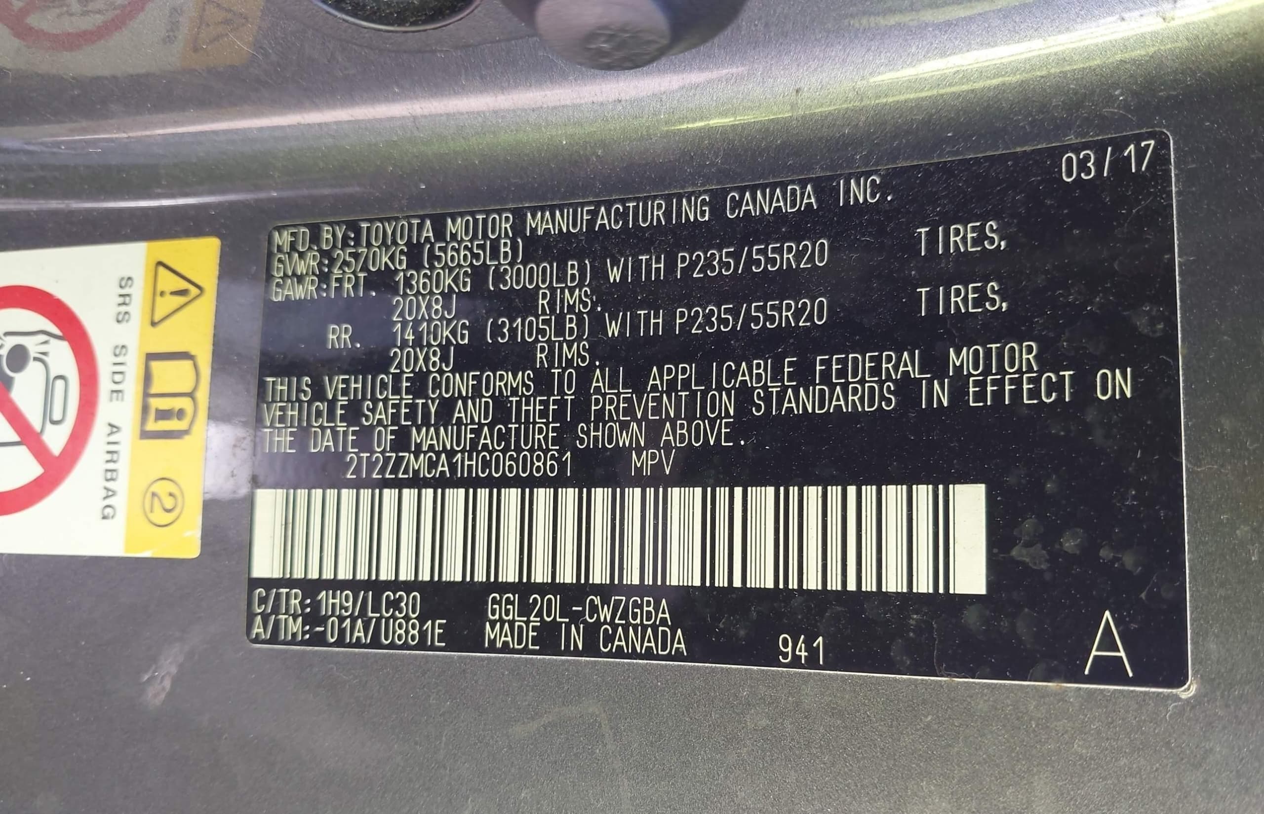VIN: 2T2ZZMCA1HC060861
