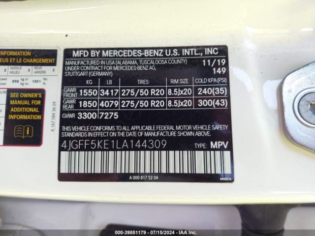 VIN: 4JGFF5KE1LA144309